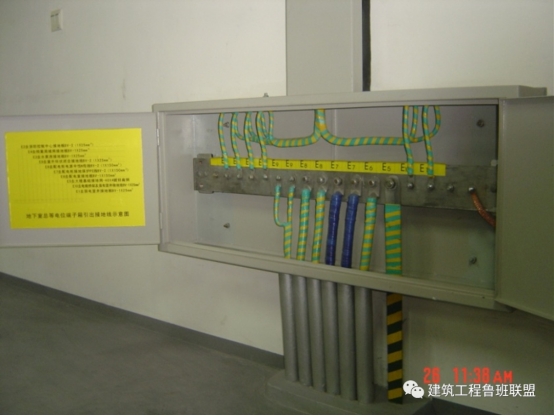 工艺说明:柜、屏、台、箱、盘的金属框架及基础型钢必须接地(PE)或接零(PEN)可靠;装有电器的可开启门,门和框架的接地端子间应用裸编织铜线连接,且有标识。金属导管与配电箱连接处必须做接地跨接,且各管路必须单独与汇流排或接地干线连接,不得串接。