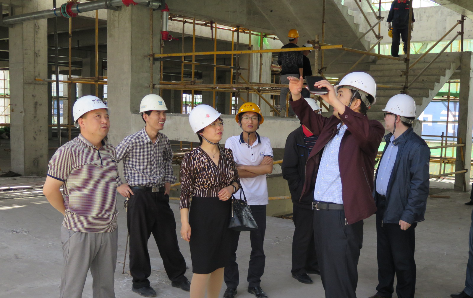 5月16日下午,我院教代会工程质量监督委员会主任何克祥,委员李选芒、卢文澈一行与工会、基建处负责人实地查看了精艺楼(工程技术训练中心)的建设质量。