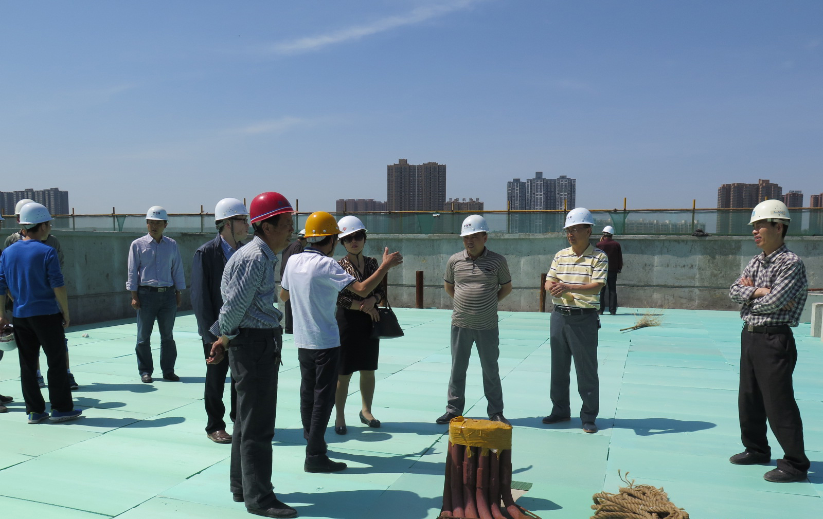 在施工现场,委员们边看边听施工单位、监理单位的建设情况汇报,详细了解工程进度、质量保障措施、施工技术、安全管理等情况。实地查看了楼顶面基层处理工地、三四层砌墙工地和五六层的消防管道安装工地等,现场就建筑布局、防水处理等与施工单位负责人进行了充分的交流与沟通,工程质量监督委员会的同志对于该项目的施工质量给予了肯定、对安全管理、施工进度等提出了合理化的建议。